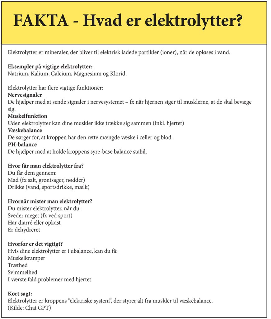 Sportsfolk har vidst det i mange år, og os ‘almindelige’ mennesker er også begyndt at se det: At kroppen kan have behov for ‘elektrolytter’.