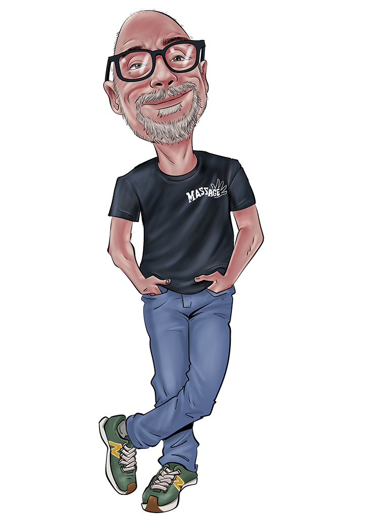 -Du skal sgu have en ny tegning. Den gamle ligner ikke længere, er der en del som har sagt. Så nu har den dygtige karikatur tegner Budl Hebat fra Jacarta, Indonesien, tegnet mig i denne version. Min kones kommentar: Det er en flot mand, men hvem er det?
